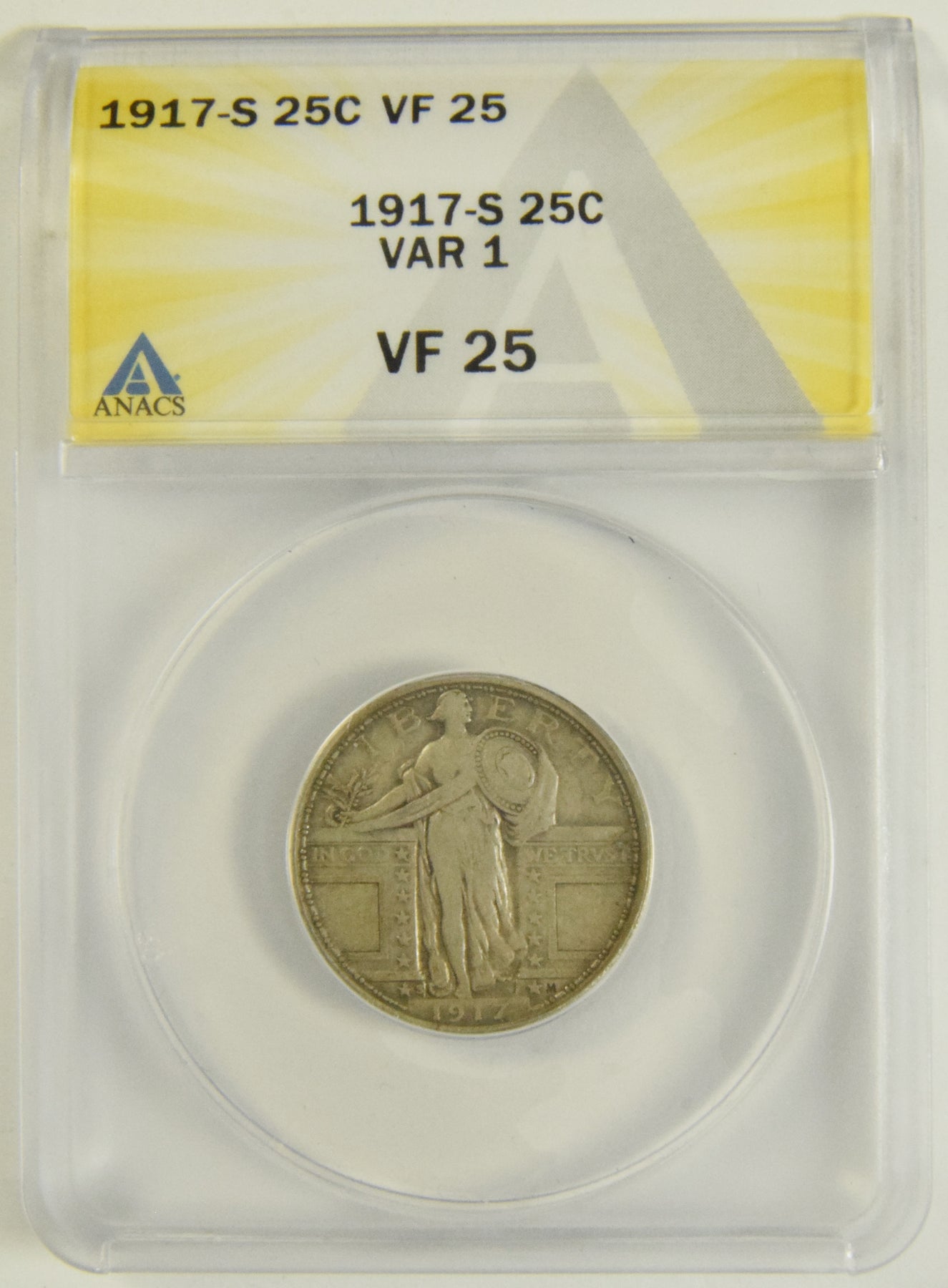1917-S Type 1 Standing Liberty Quarter . . . . ANACS VF-25