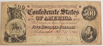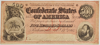 1864 $500.00 Confederate Note T64 . . . . VF/XF